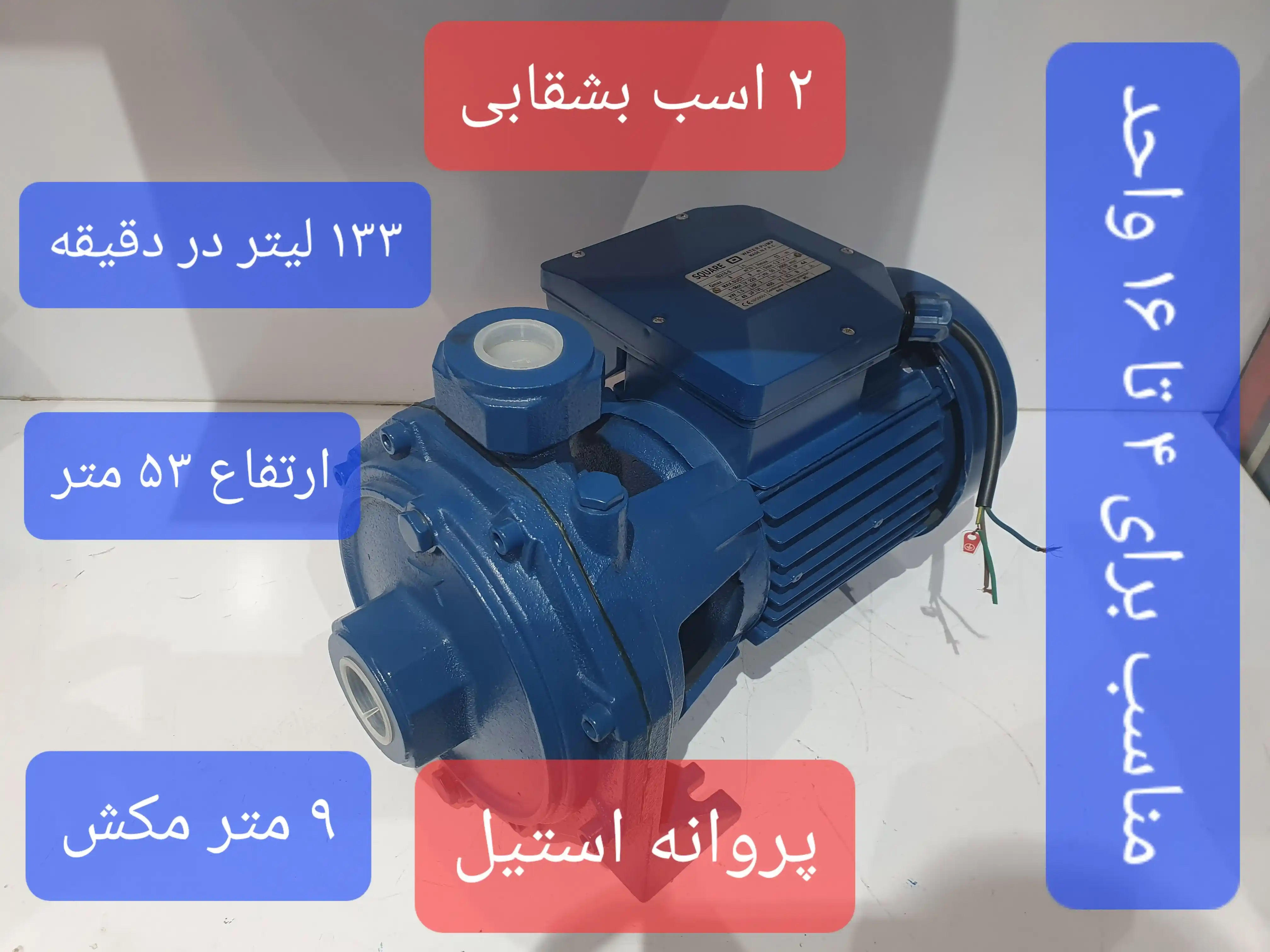 پمپ دو اسب (2 اسب) مناسب استفاده در آپارتمان از چهار واحد تا شانزده واحد